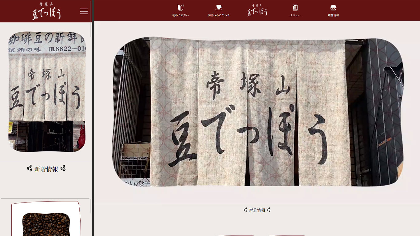 | 制作について | 訓練校のグループ制作実習で担当した珈琲店のメインビジュアル動画です。お店の雰囲気に合わせて和柄を採用し、このWebサイトからお店とお客様の円が繋がっていくことを願って七宝柄を取り入れています。 |
